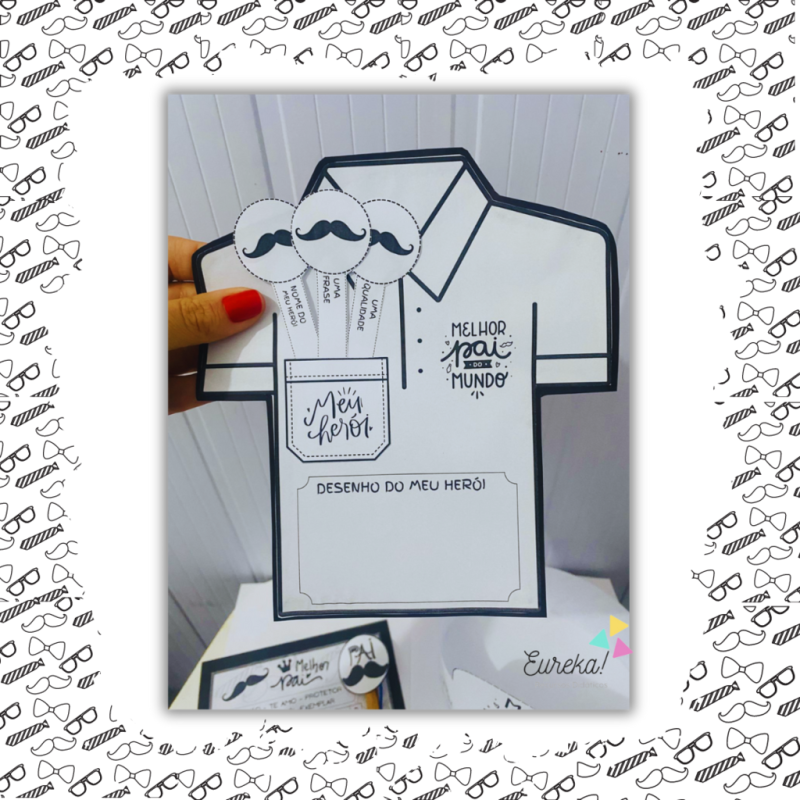 Uma camisa recortável com um bolso onde a criança poderá escrever sobre seu pai.